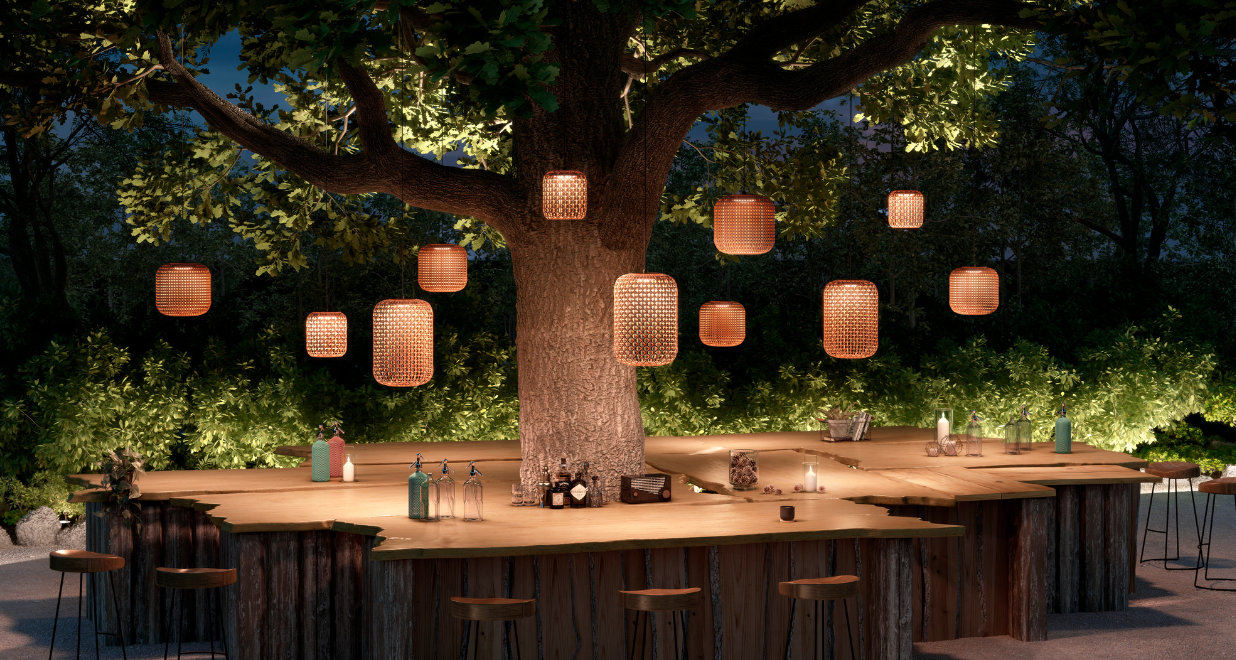 Fora is a product designed to illuminate warm outdoor spaces. Light source is protected by an elliptical medium intensity and U.V. resistant polythene globe, which grants a water tight electrical fixture. The shade is made of synthetic wicker; making it highly resistant to weathering while casting a pleasant diffuse light.