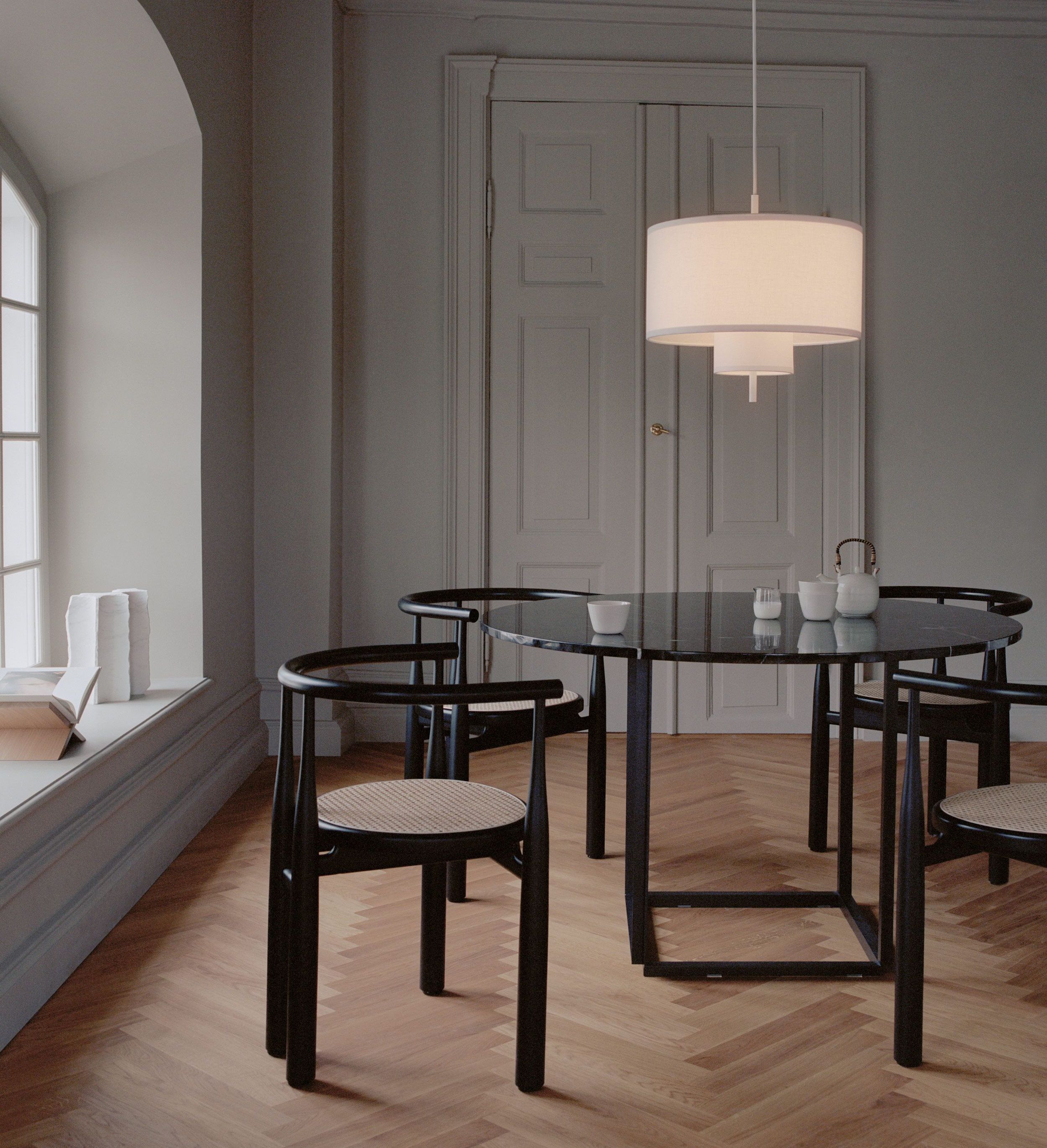 The Margin lighting family is designer John Asbury’s modern interpretation of a classic luminaire. Exploring a tiered typology for lighting, Margin’s intersecting shades gently diffuse the light and instantly set the tone with warmth and tactility. The softness of the fabric is tempered by a clean and graphic silhouette that lends a certain presence and volume to a space. It is the sense of proportions, along with details such as the linear element through the lamp, which sharpen the aesthetics and allow Margin’s special character to unfold.